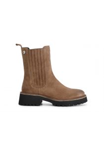 Stiefelette aus crosta-leder mit verstecktem gummizug und 50 mm hohem absatz und individuellem zierring. die innensohle ist aus leder gefertigt.