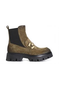 Damenstiefelette aus wildleder verziert mit einer spange und mit seitlichem gummizug. die innensohle ist aus leder gefertigt. ein vielseitiges und dynamisches modell ideal zur vervollständigung vieler outfits.