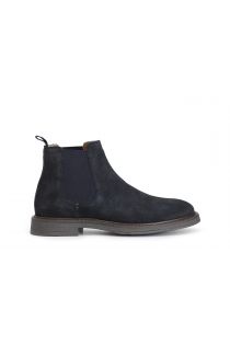 Boots aus wildleder mit gummizug. das obermaterial ist mit der sohle vernäht. innensohle aus leder.