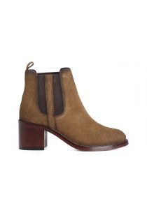 Damenstiefelette aus wildleder mit seitlichen gummizügen. die innensohle ist aus leder gefertigt. ein schuh mit abgerundeter spitze und quadratischem 65-mm-absatz der jedes outfit bequem und gleichzeitig auffällig macht.