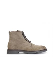 Schnürstiefelette aus wildleder für herren. das obermaterial ist mit der sohle vernäht. innensohle aus leder.