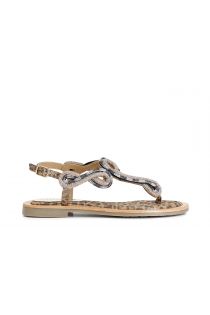 Zehenstegsandalen wildleder und animalierprint mit strass-accessoire. bequeme gepolsterte innensohle für eine weiche passform. 15 mm hoher absatz. perfektes schuhwerk zum kombinieren mit verschiedenen looks.