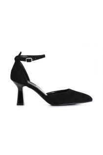 wildlederpumps mit blockabsatz und knöchelriemen black