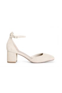 Wildlederpumps mit knöchelriemen. die innensohle ist aus leder. der absatz beträgt 5.8 cm.