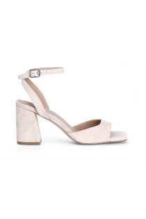 Wildledersandalen. die innensohle ist aus leder. schuh mit leicht quadratischer form. 8.3 cm dicker absatz.