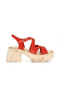 Gekreuzte wildledersandalen. der absatz ist 7 cm hoch.