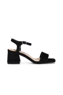 Wildledersandalen mit knöchelriemen. die innensohle ist aus leder. bequemer 5.6-cm-absatz.