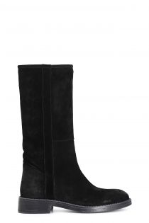 Knight-modellstiefel aus wildleder mit abgerundeter form. 33 mm hoher absatz. die innensohle ist aus leder.