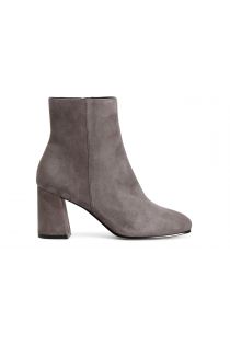 Damenstiefelette aus wildleder. reißverschluss auf der rückseite für ein leichtes anziehen. der absatz beträgt 55 mm und die innensohle ist aus leder.
