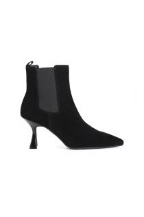 Damen-stiefelette aus wildleder mit 70 mm hohem absatz und schmaler form. seitliche gummizüge erleichtern die passform. die innensohle ist aus leder.