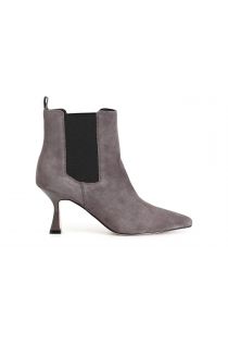 Damenstiefelette aus wildleder mit 80 mm hohem stiletto- absatz. seitliche gummizüge für einfaches anziehen. die innensohle ist aus leder gefertigt.
