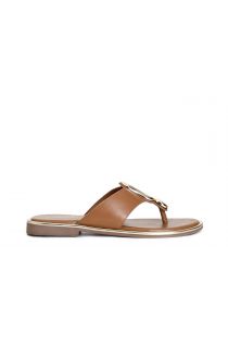 Zehenstegsandalen aus leder mit accessoire. futter und innensohle sind aus leder. der absatz ist 2 cm hoch. angenehm zu tragen und einfach zu kombinieren.