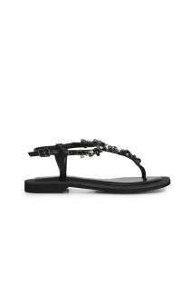 zehenstegsandalen aus leder mit schmuck-accessoire. black