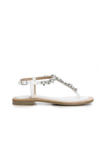 zehenstegsandalen aus leder mit schmuck-accessoire. white