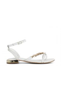 Zehenstegsandalen leder mit gold-accessoire. knöchelriemchen.
