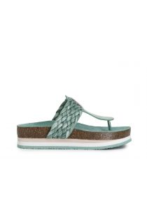 zehentrenner aus geflochtenem raffiabast green