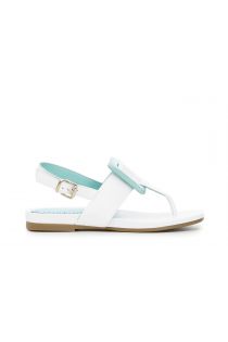 Zehentrenner aus weichem Nappaleder mit besonderer eckiger gepolsterter Schlaufe, die als Accessoire dient. Bequemes Fußbett.