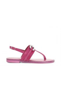 zehentrenner aus rauleder mit schmuck-accessoire hot pink