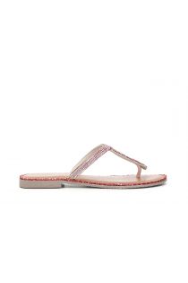 Zehentrenner mit nuanciertem Mikrostrass und einer besonderen, die gesamte Leder-Innensohle einrahmenden Kontrast-Bastnaht.