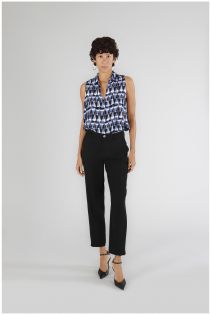 Hose im zigarettenstil aus fließendem und fallendem stoff. knopf- und verdeckter reißverschluss. kombinierbar mit der passenden jacke. perfektes stück das ihrer sommergarderobe einen hauch von stil verleiht.