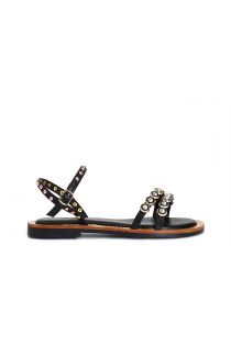 Sandalen modell gilda aus nappaleder mit nieten und strasssteinen. das futter und die innensohle sind aus leder. der absatz ist hoch h. 1.5 cm. bequemer schuh auch nach mehrstündigem tragen und perfekt kombinierbar mit mehreren looks.