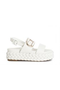 zwei-band-sandale mit geflochtenem boden und accessoire white