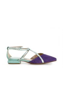 zweifarbige ballerinas aus rauleder mit knöchelriemen multi purple