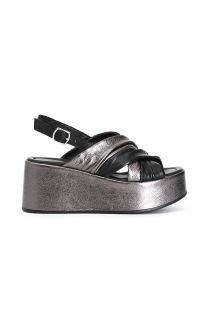 zweifarbige crossover-sandalen aus leder black/metal gun