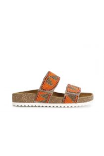 zweifarbige flache sandalen, pantoffel-modell, aus kork und strass orange/brown