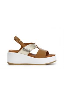 Zweifarbige sandalen mit asymmetrischer kreuzung aus mehreren materialien. die gepolsterte innensohle leder macht das schuhwerk auch nach stundenlangem tragen noch bequem.