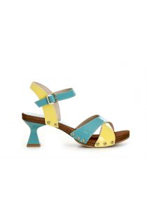 zweifarbige sandaletten aus lackleder mit latino-absatz turquoise/yellow