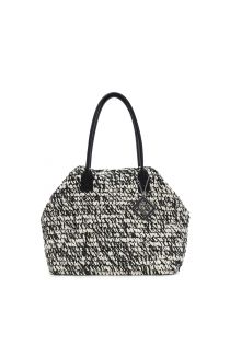 Zweifarbige gehäkelte tote bag aus papier sehr viel stauraum doppelter tragekomfort (interner kordelzug).