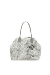 Zweifarbige gehäkelte tote bag aus papier sehr viel stauraum doppelter tragekomfort (interner kordelzug).