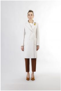 Zeitloser basic-zweireihermantel. der kragen ist mit einer brosche verziert. perfekt um alltägliche looks sofort aufzuwerten.