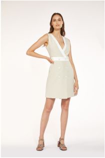 Raffiniertes, feines zweireihiges Kleid in Vintage-Optik mit schmalem Gürtel und Halsausschnitt, die Kontraste schaffen